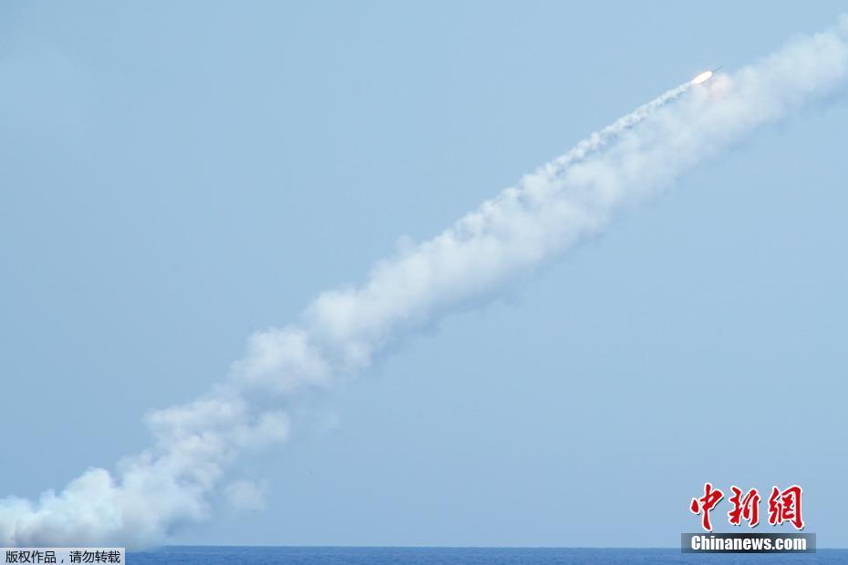 当地时间2017年9月14日,地中海,据俄罗斯卫星网14日报道,俄国防部消息称,俄军潜艇发射“口径”巡航导弹,打击“伊斯兰国”位于叙代尔祖尔郊区的指挥部、通信站和弹药库。俄国防部称,俄军的“大诺夫哥罗德”号和“科尔皮诺”号潜艇从水下发射“口径”巡航导弹,对叙利亚境内“伊斯兰国”目标实施打击。
