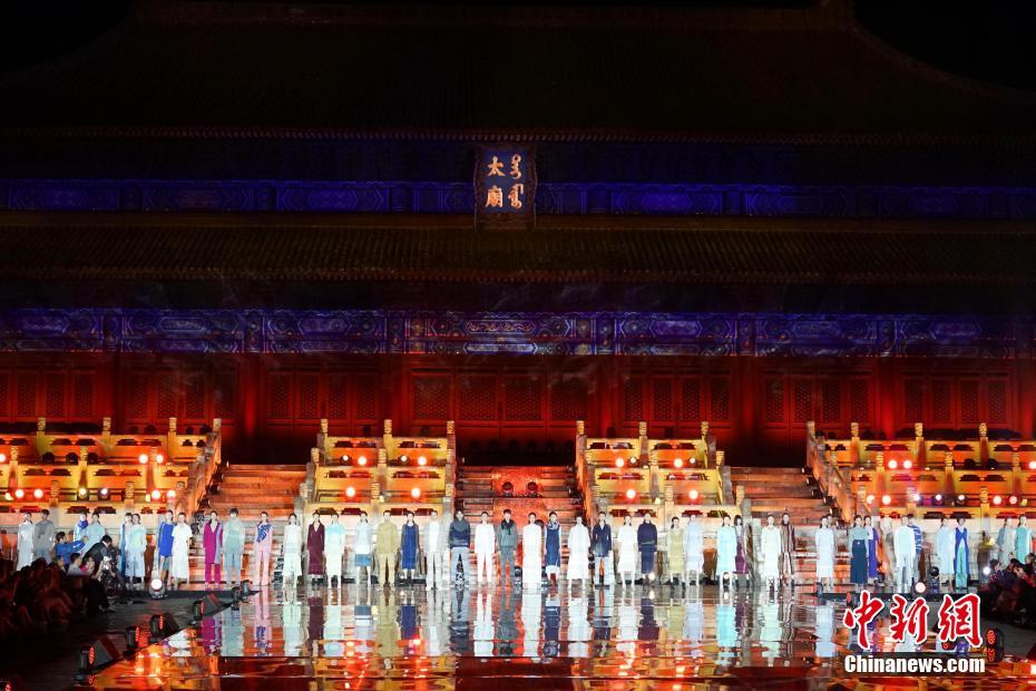 9月22日,2017北京时装周在太庙开幕。图为开幕式后,模特在太庙走秀。 中新社记者 韩海丹 摄