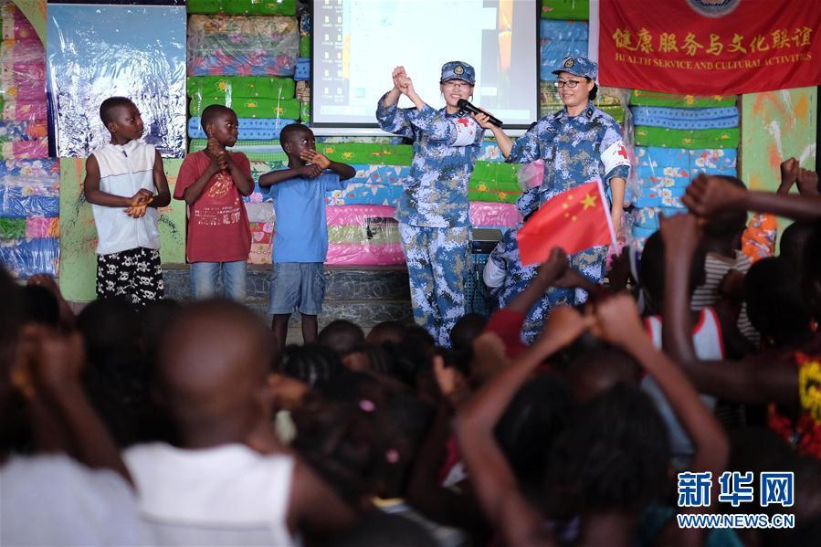 中国海军和平方舟医院船医护人员22日来到塞拉利昂首都弗里敦“老学校”泥石流灾民安置点,为受灾民众提供人道主义医疗服务并开展联谊活动。新华社发(江山 摄)