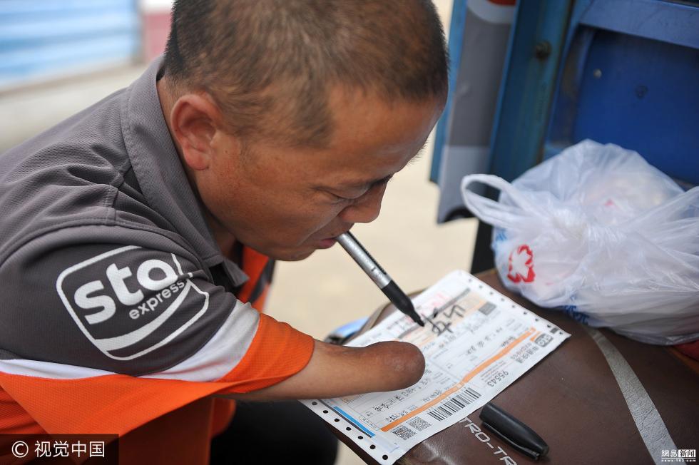 快递小哥被赞无臂硬汉 想攒钱供女儿