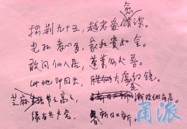 冯大爷生前写给张奶奶的最后一封情诗。