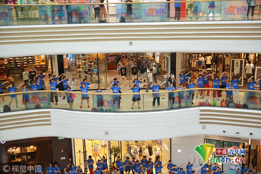 2017年6月11日,浙江省嘉兴市万达广场商场内被排舞大妈占领,节奏感十足的排舞大军仿佛成了商场跳动的“心脏”,引得来往顾客纷纷驻足。