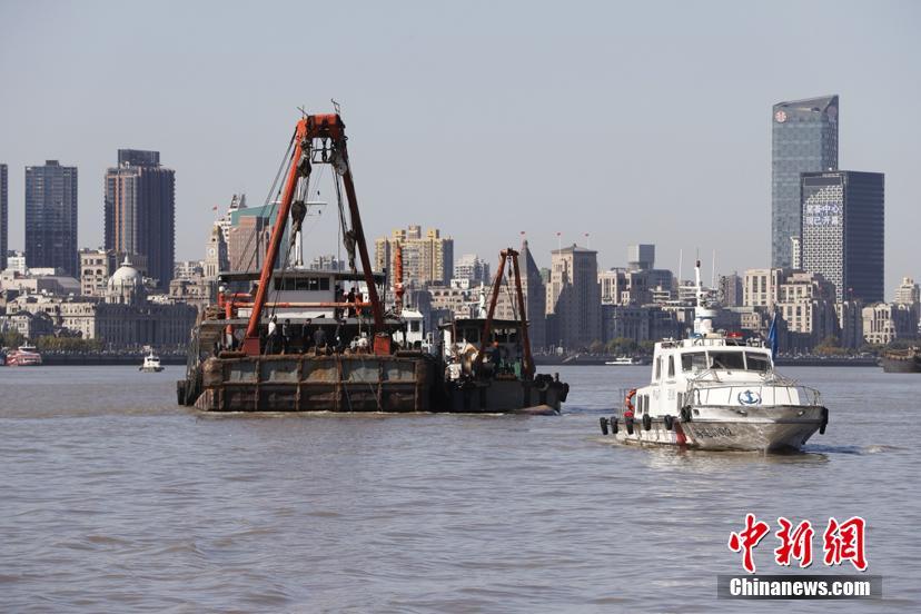 11月9日上午9时50分上海海上搜救中心接报,黄浦江进口船“宝迪隆9”轮(舟山,长149.48米,10222总吨)因失控在董家渡江面与“德清货1925”轮(长30米,内河船)和“苏中858”轮碰撞,导致“德清货1925”轮在航道中翻扣。翻扣船上共3人,其中2人被附近船救起,1人失踪,另一船“苏中858”轮无损。殷立勤 摄