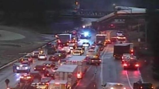 美国一列车脱轨 坠入桥下致6人死亡