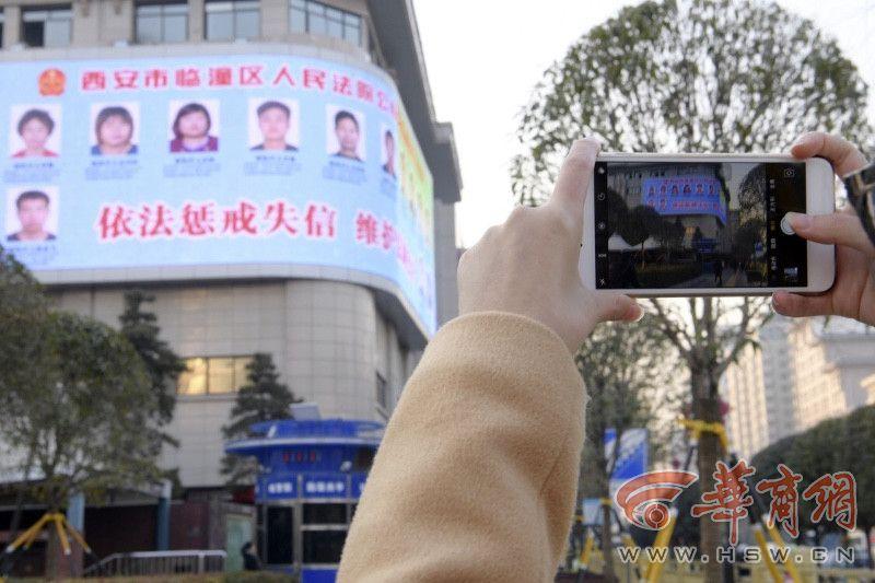 12月21日,西安北大街十字、未央路、长安北路、南二环等繁华区域的LED大屏幕上集中滚动播放了400余名失信被执行人名单,包括姓名、照片、身份证号等信息,吸引了大量市民的注意。据悉,这是西安中院首次组织两级法院共同在核心商业圈电子屏幕上公布失信被执行人名单,也是西安中院正式开启年底“飓风行动”第一记重拳,碑林、莲湖、新城、未央等十三个区县法院共同参与,整个播放活动将持续五天,2018年元月还将播放一个周期。昨日公布的400余名失信被执行人,包括自然人与法人单位,均是西安两级法院所执行的民商事案件中的被执行人,因为存在有履行能力而拒不履行、违反财产报告制度等失信情形而被列上了法院的失信被执行人名单。华商记者 宁军 文 黄利健 图