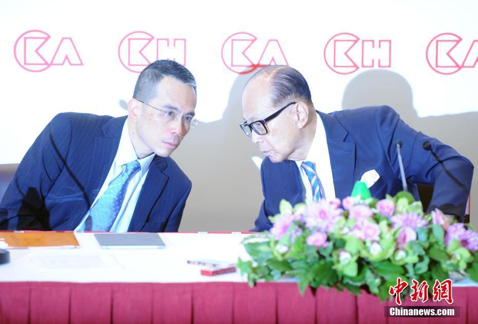 3月16日,长和系主席、香港富商李嘉诚(右)在长和全年业绩记者会上宣布退休,集团主席一职将由其长子李泽钜(左)接任。 中新社记者 谭达明 摄