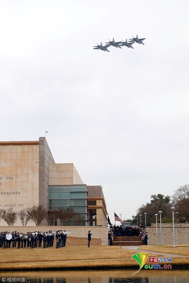作为在德州举行的葬礼的一部分,规模空前的21架F-18战斗机以“悼念队形”,向前海军飞行员、第41任总统乔治·H·W·布什致敬。