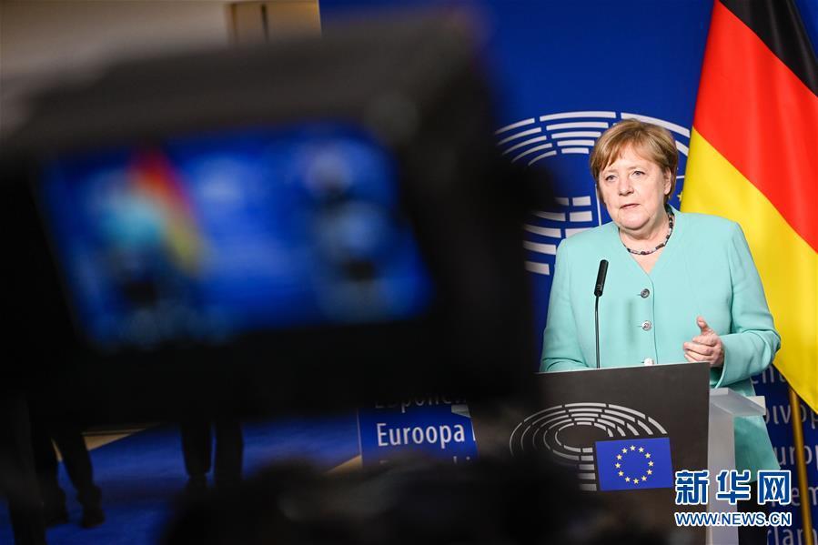 7月8日,德国总理默克尔在位于比利时布鲁塞尔的欧洲议会出席发布会。 德国总理默克尔8日在欧洲议会发表讲话,阐述德国担任欧盟轮值主席国的工作规划。默克尔强调,欧洲各国必须搁置分歧,找到共同解决方案,这样才能增强凝聚力,变得更强大,最终成功度过当前危机。她说:“这也是我们担任主席国的指导原则。团结一致,让欧洲再次强大。” 新华社发(欧盟供图)