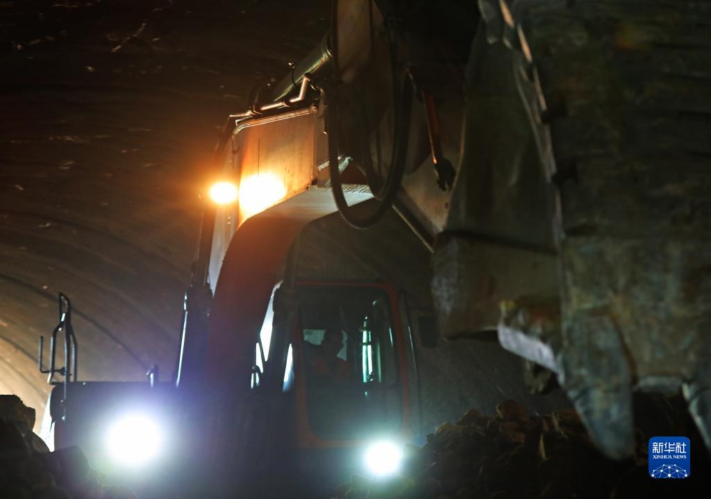 6月25日,中铁三局工程技术人员使用挖掘机在隧道内作业。