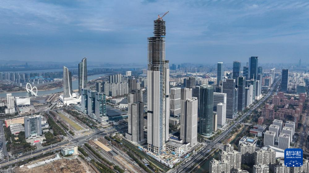 这是1月16日拍摄的南京金融城二期(东区)项目主体结构(无人机照片)。