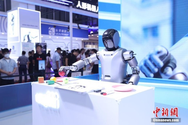 8月21日,2024世界机器人大会在北京北人亦创国际会展中心开幕。图为展会现场的仿真人形机器人。