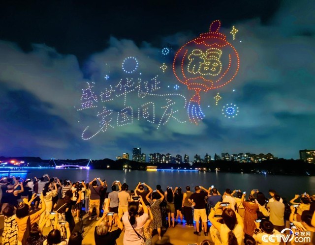 9月27日,“世纪璀璨——无人机灯光秀”表演在上海世纪公园举行,1000架无人机在世纪公园镜天湖上空组成“国庆快乐”“盛世华诞 家国同庆”“浦东欢迎您”等字样和玉兰、荷花、梅花等花卉图案,在国庆假期即将到来之际,为市民游客献上一场视觉盛宴。