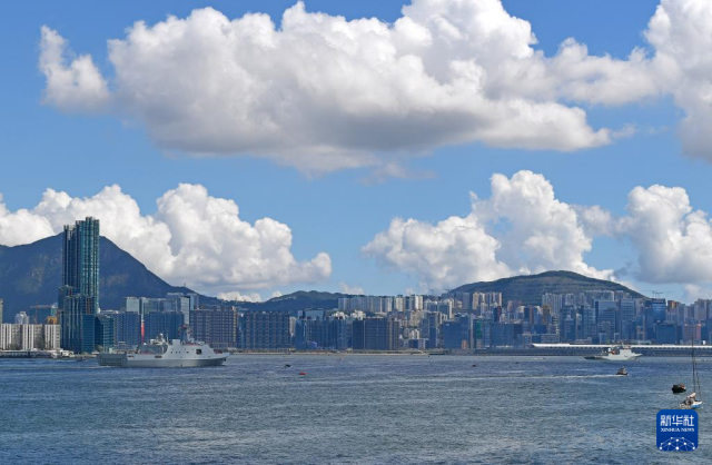 10月3日,中国海军沂蒙山舰(左)、戚继光舰从香港维多利亚港驶过。