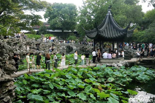 2025年10月3日,江苏苏州秋高气爽,天气睛好,众多市民和游客纷纷来到苏州古典园林狮子林观光游览,乐享国庆假期。视觉中国