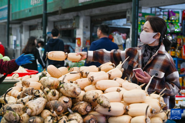 10月15日,消费者在江苏南京一家农贸市场选购蔬菜。