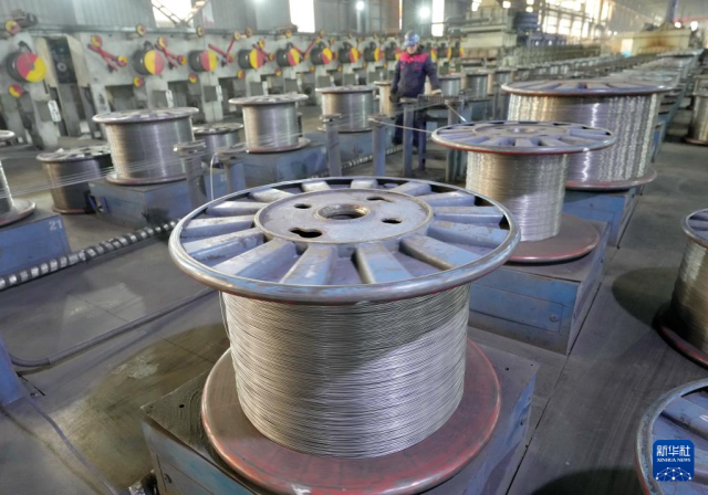 12月23日,工人在河北省迁安市鼎泰五金制造有限公司镀锌丝生产线上工作。