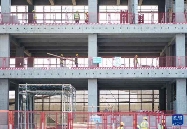 1月2日,工人在位于上海的中建三局一公司灿瑞科技全球芯片研发中心项目工地施工。