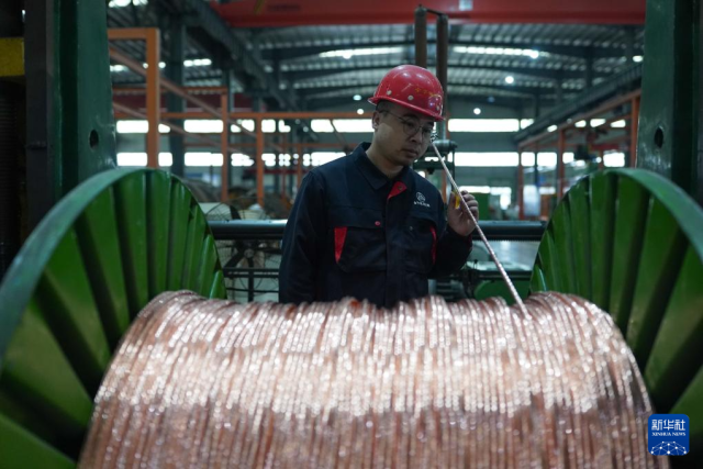 1月20日,在江西瑞金金字电线电缆有限公司车间内,工人监测生产情况。