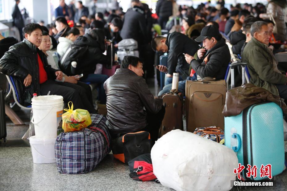 1月21日,在铁路上海站售票大厅内,旅客们有的排队正在购买车票,有的刷着手机查看剩余的车票,还有的已经背上行李回家。按照“春运购票日历”,今天,2月19日(正月初四)的火车票正式开售,春运返程火车票迎来“抢票”高峰。 殷立勤 摄