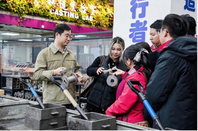 11月2日,北京,来华参加“红色研学之旅”之“红星闪耀”研学营的越南青年在清华大学参观铸造实验室。中央团校供图