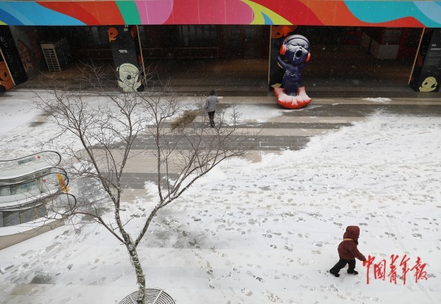 12月12日,北京望京地区,行人从一处积雪处经过。当日,北京迎来今年冬天的首场降雪。据相关部门介绍,较1991年至2020年平均12月3日的初雪日,今年北京冬天的初雪日迟到了9天。交通部门已启动预警机制,为公路铲冰除雪做准备,并提醒市民出行小心路滑、注意安全。中青报·中青网记者 陈剑/摄