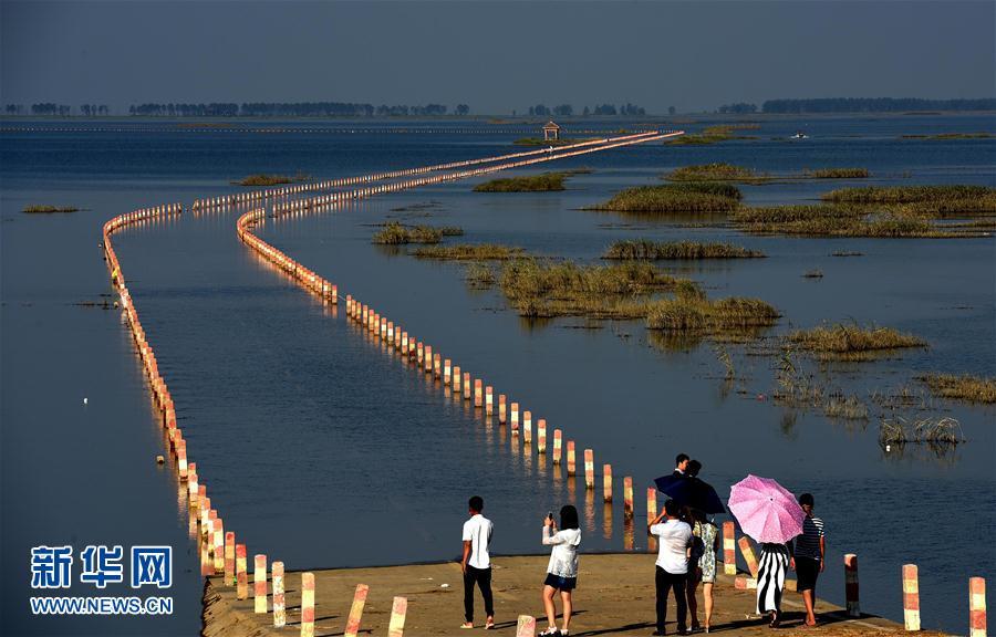 7月21日18时,江西永修县吴城站水位为18.96米,鄱阳湖再现“最美水上公路”。据悉,永吴公路大湖池段全长5.05公里,位于永修县大湖池,每年夏季六七月份的时候,鄱阳湖进入汛期。当水位达到18.67米时,水会漫过永吴公路大湖池段,就形成了奇特的水上公路景观。新华社记者 宋振平摄