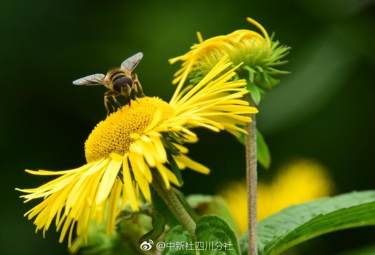 7月20日,四川省叙永县摩尼镇金榜村二社,满山遍野的野菊花相继盛开,点缀在林间草丛中,三五成群的蜜蜂匍匐在花蕊上采蜜,宛如童话世界。(李欣)