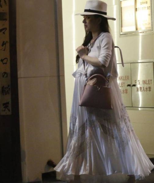 天王嫂方媛挺大肚逛街 穿条纹白裙神