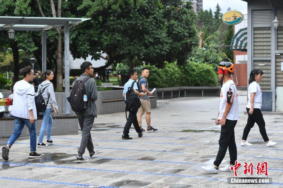 9月6日,学生戴着“盲人头盔”在校园内演示,吸引学生关注。昆明理工大学城市学院学生自主设计了一款《Eye See》视障人智能导航头盔,可满足视障人群的大部分生活及出行要求。头盔可以为盲人读书,可以用语音播报让佩戴者感知周围障碍。 中新社记者 任东 摄