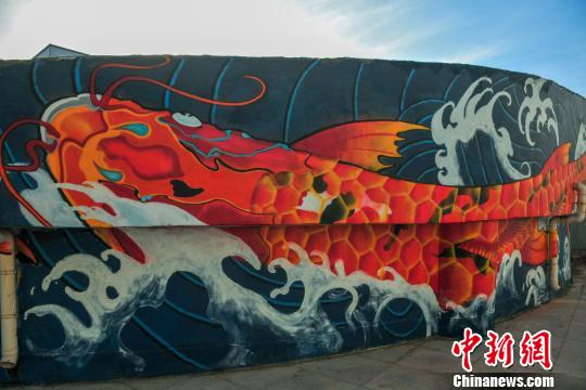 沈阳高校现35米长的锦鲤墙