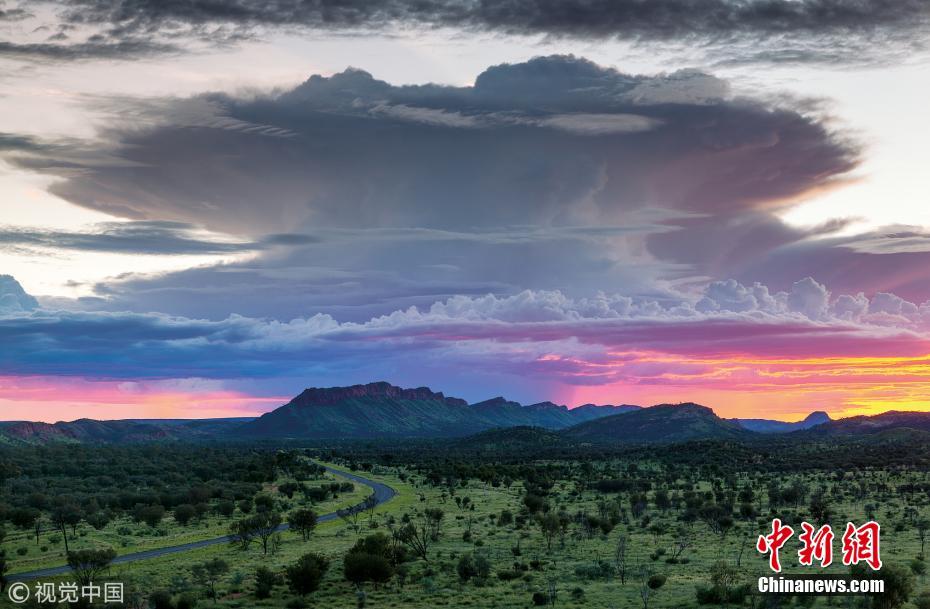 近日,澳大利亚气象局发布了官方2018年日历。日历由一组2017年拍摄的全澳气象风景照组成,照片中的日月星辰,风雨雪霜构成的自然景象无比壮丽,美景令人目不转睛。图为2017年9月的澳大利亚北领地麦克唐奈山脉(MacDonnell Ranges)西部,傍晚时分出现风暴云。 图片来源:视觉中国