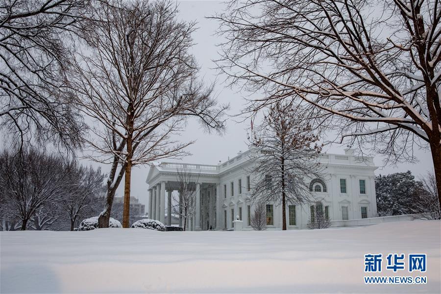 这是1月13日在美国首都华盛顿拍摄的雪中的白宫。 近日,美国首都华盛顿及其周边地区普降暴雪。降雪导致部分航班晚点或取消,道路交通事故增多。 新华社发(沈霆摄)