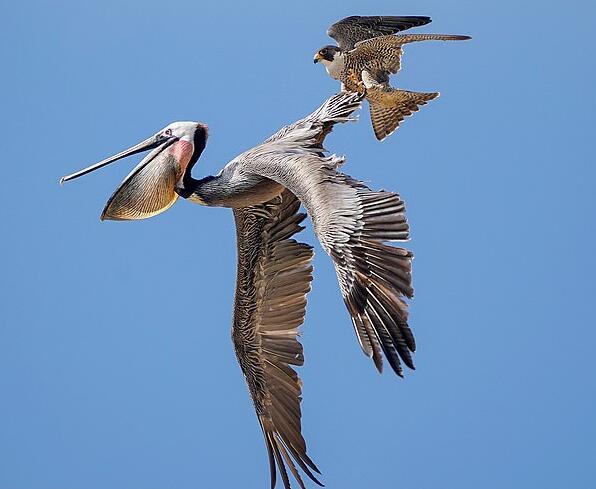 在美国加利福尼亚州圣地亚哥,一名业余摄影师拍摄到了一组令人震惊的照片,鹰妈妈为了保护自己的巢穴,向鹈鹕发起了猛烈的攻击。