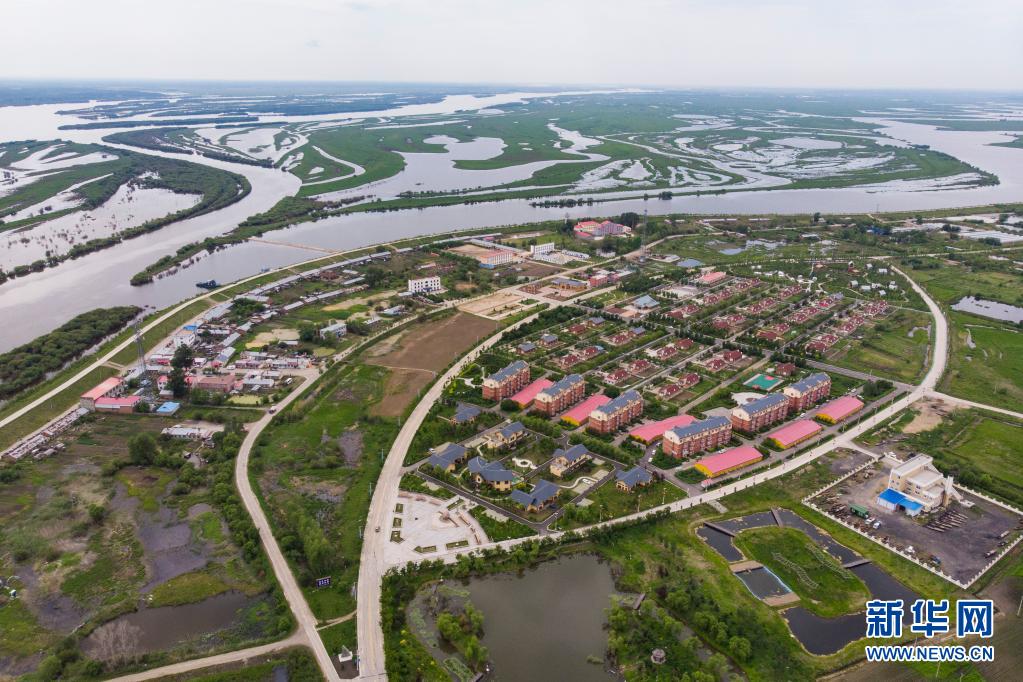这是6月24日拍摄的黑龙江省抚远市乌苏镇抓吉赫哲族村(无人机照片)。