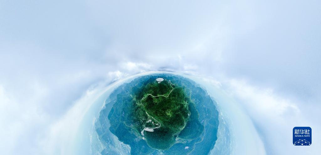 7月26日拍摄的“中国天眼”全景(维护保养期间无人机拍摄)。