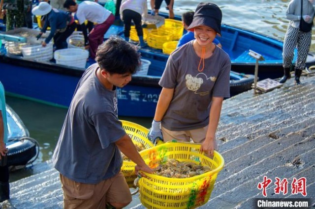 渔民收获海鲜喜笑颜开。徐绍荣 摄