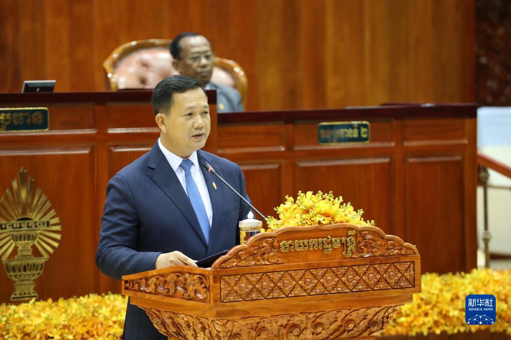8月22日,柬埔寨新一届政府首相洪玛奈在首都金边向国会议员发表讲话。