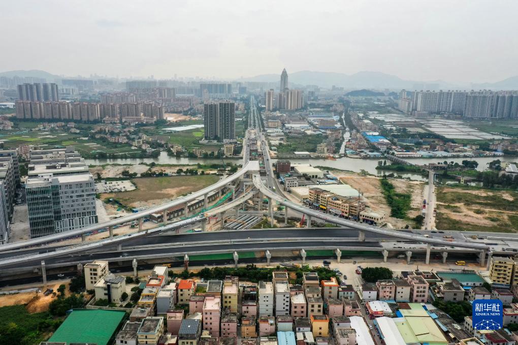 位于中山坦洲镇的坦神北路龙塘互通(无人机照片,11月16日摄)。