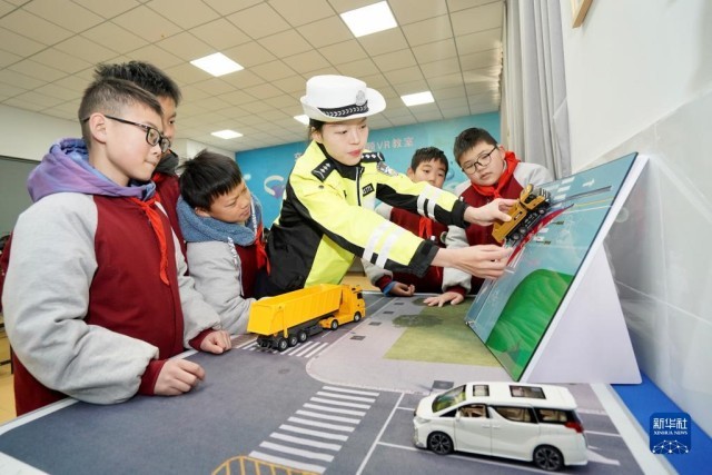 12月1日,江苏省盐城市滨海县公安局交通警察大队民警为滨海县行知实验小学的学生们讲解交通安全知识。