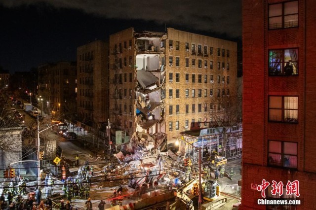 当地时间12月11日,美国纽约市布朗克斯区一栋七层居民楼发生部分坍塌,目前暂无人员伤亡报告。据当地媒体报道,该建筑建于1927 年,目前正在进行外墙施工。图为事故现场。