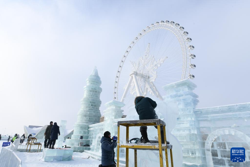 当日,在哈尔滨冰雪大世界进行的第35届中国·哈尔滨国际冰雕比赛进入第二天的赛程,来自世界各地的30余支参赛队伍精心雕琢,尽显哈尔滨冬季极寒之美。
