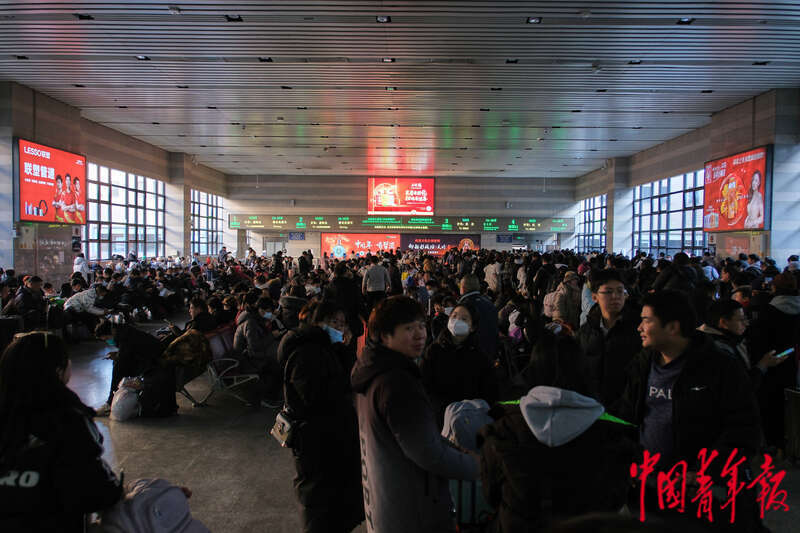 1月26日,北京西站,当日是2024年春运首日,候车室内人头攒动。作为全国客运量最大的火车站之一,北京西站预计今年春运期间发送旅客将达490余万人,旅客出行目的地主要集中在郑州、西安、武汉、长沙等城市。田嘉硕/摄