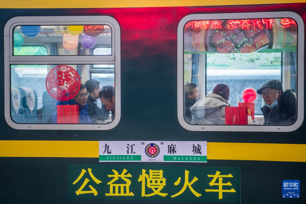 临近春节,旅客们乘坐这列公益“慢火车”踏上归家之旅。铁路工作人员用彩带、气球、窗花等装饰车厢,公益“慢火车”上洋溢着浓浓的年味儿。
