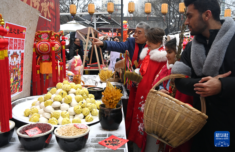 2月2日,在西安永兴坊举行的小年活动上,来自西安各大学的留学生在民俗专家的讲解下了解小年祭灶所用的物品。
