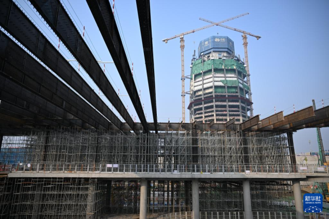 雄安城际站及国贸中心项目建设现场(2月6日摄)。