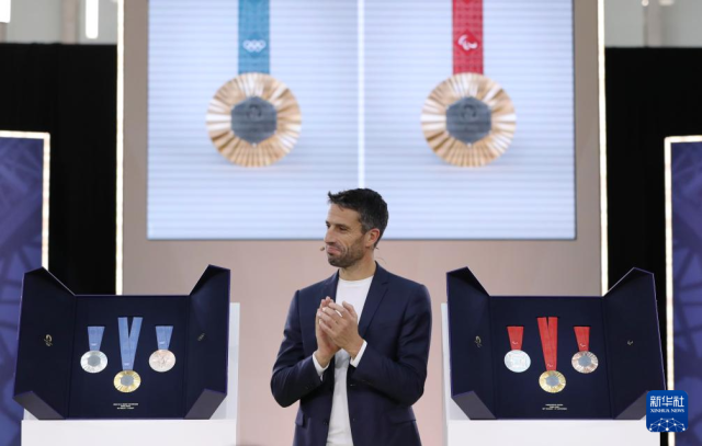 2月8日,巴黎奥组委主席托尼·埃斯坦盖在巴黎奥运会及残奥会奖牌发布仪式上。