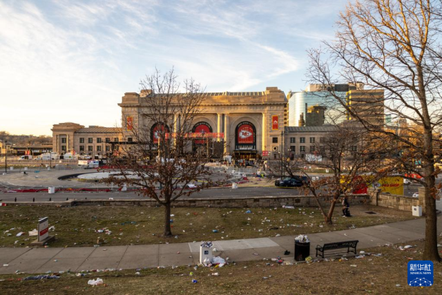 这是2月14日在美国密苏里州堪萨斯城拍摄的枪击事件现场。
