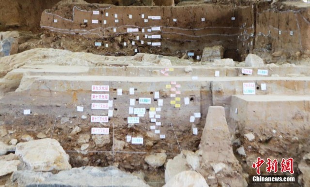 3月25日,山东省临沂市沂水县,记者实地探访山东沂水跋山遗址群。图为跋山遗址文化层。