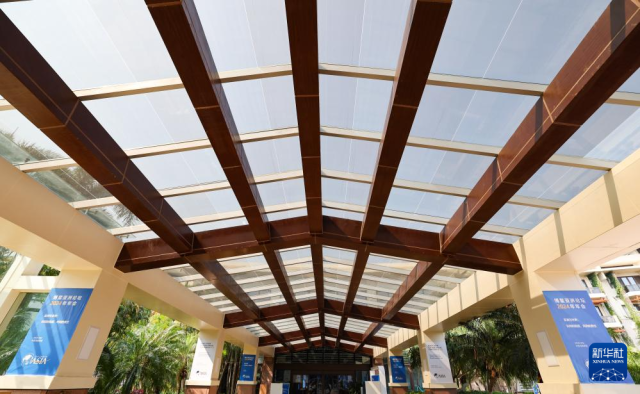 这是博鳌近零碳示范区内改造过后的连接博鳌亚洲论坛大酒店与会议中心的光伏连廊(3月25日摄)。