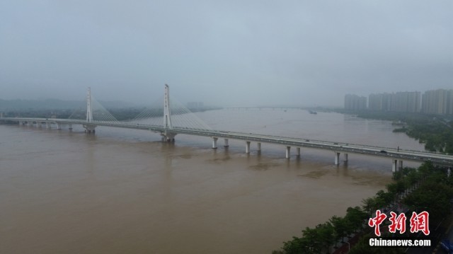 4月21日,广东清远,俯瞰北江景象。珠江委介绍,自4月16日以来,珠江流域遭遇持续性强降雨,流域共有44条河流发生超警洪水,超警幅度0.01米至7.04米,其中北江发生2024年第2号洪水。